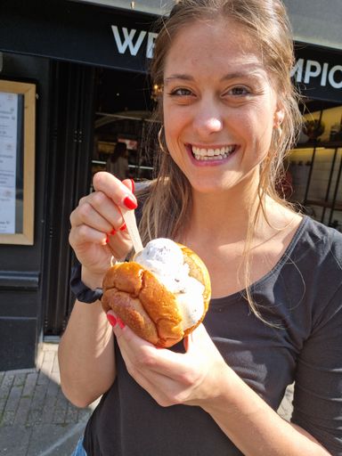 Und dann bekam ich 2017 die Chance, endlich selber Eis zu verkaufen und eigentlich genau das zu machen, was ich damals bei Oma am Küchentisch gemacht habe: Eis-Kreationen mixen. Ich gehörte zur ersten Schlecks Hamburg Crew in Hamburg und habe es geliebt, die wildesten Wünsche der Kund*innen zu erfüllen. 🍩🍫🍬🍭🍰🍧